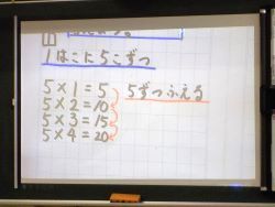 子どもたちからは「そうか!5ずつ増えていくんだ!」「この計算、便利だね」「意外と簡単だぁ~」等の声があがっていました。