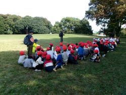 次は、班遊びです。何をするかは、遊びリーダーが楽しめそうな遊びを考えました。「丘を走っておりるのがたのしかった~」「たくさんドングリを拾った!」など、いろんな遊びで体を十分に動かしました。