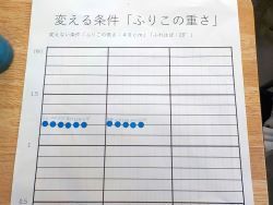 「重さだけを変えて、長さとふれ幅は変わらないとき」等の条件で実験を繰り返しました。