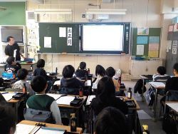 まずは、これまでの復習として習字用具の置き方、「とめ」「はね」「はらい」の書き方を動画で確認しました。