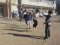2年生は、前跳びや後ろ跳び、あや跳びやかけ足跳びに挑戦している子が多くいます。「前跳び27回跳べた。ぼくの記録は30回なのでもう少しで新記録だ」「去年の二重跳び7回の記録をやぶりたい」「あや跳びが跳べるようになりたい」など、いろんな目標を口にしています。