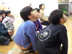 読み聞かせが始まると、子どもたちはすぐにお話の世界に入り込み、目をキラキラさせていました。