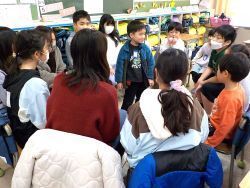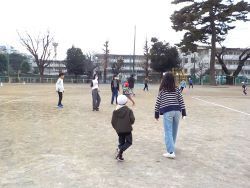 時間はあっという間に過ぎていき、昼休み終了のチャイムが鳴りました。遊びの終了です。でも、名残惜しそうに笑い合っています。子どもたちからは「楽しかったね」「また遊びたいね」という声が聞こえました。