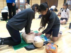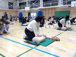 講習を受けている子どもたちからは「胸骨圧迫が続いて、手のひらが痛くなるほどでした。」「AEDの使い方は、焦っているときは難しいと思うのでしっかり練習したいです。」「命にかかわることだから真剣にやりました。」という声がありました。