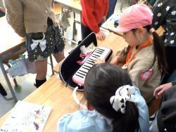教室では、折り紙や鍵盤ハーモニカを教えたり、カルタやすごろくで遊ぶグループもありました。鉛筆の持ち方やひらがなの書き方も教えるグループはありました。「じょうず じょうず」「うまいなぁ」等、1年生の子が園児を褒めている声も聞こえました。