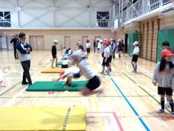 今日は、4年生がオリンピアン(2010年バンクーバー冬季五輪ボブスレー競技に出場) の方から、運動で大切なジャンプの仕方を指導してもらいました。