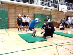2つ目は「腕を振る」ことです。腕を後ろに大きく前に小さく振ります。これに気をつけると、正座で座っている状態からも体が浮いて両足で立つことができます。子どもたちは「できた! できた!」と大喜びです。講師は、一人一人に声をかけてくださいました。