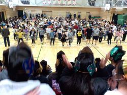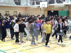 次は、2年生です。「6年生は〇〇できて、かっこいい~!」など、6年生のかっこいいところを大きな声で発表しました。6年生は大いに照れながらも嬉しそうな様子でした。そして、「6年生も一緒に踊りましょう」と呼びかけ 「♪ ぼくらの学校のリーダーは ~6年生 ♪」 と歌いながら一緒に踊り、6年生も一緒に大いに盛り上がりました。