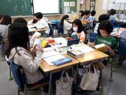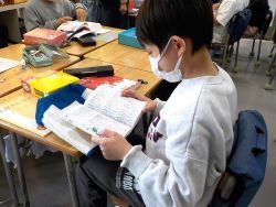 子どもたちは、次々に国語辞典から言葉を探し、意味をノートに書き込んでいきました。