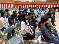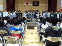 6年生の「門出の言葉」がはじまると、5年生は身を乗り出して6年生を見つめます。6年生の呼びかけと歌のすばらしさに聴き入っている感じです。