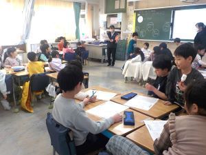 4年生と6年生 道徳授業地区公開講座の様子です。