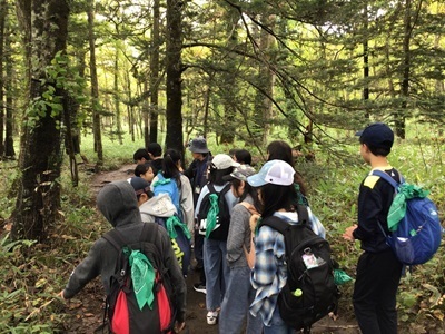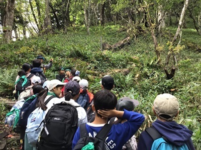 美味しい空気の中、ネイチャーガイドさんの話を熱心に聞きながら進んでいきます。