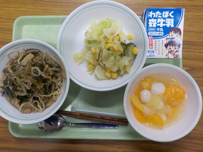 【献立】しょうゆラーメン、大豆サラダ、フルーツポンチ、牛乳