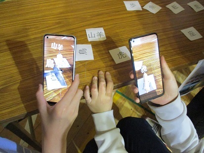 AR体験・・・漢字を読み込むと、その漢字の生き物が画面上に表れて動き回ります。